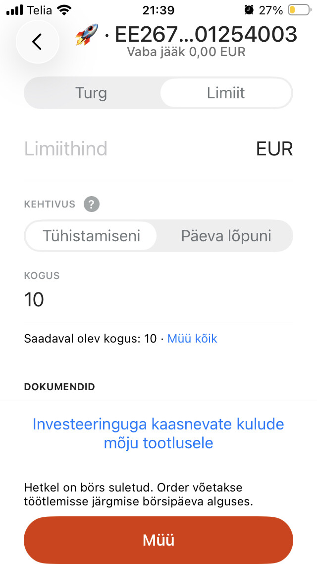 Kapitulatsiooni nupp (müü kõik) ja koguse näitamine on tegelikult uues äpis tehtud aga näha juhul kui kontol pole võimenduslaenu lepingut. Pidime siin paraku kompromissi tegema ja võimendusega klientideni jõuab see uuendus eeldatavasti kolmandas kvartalis.