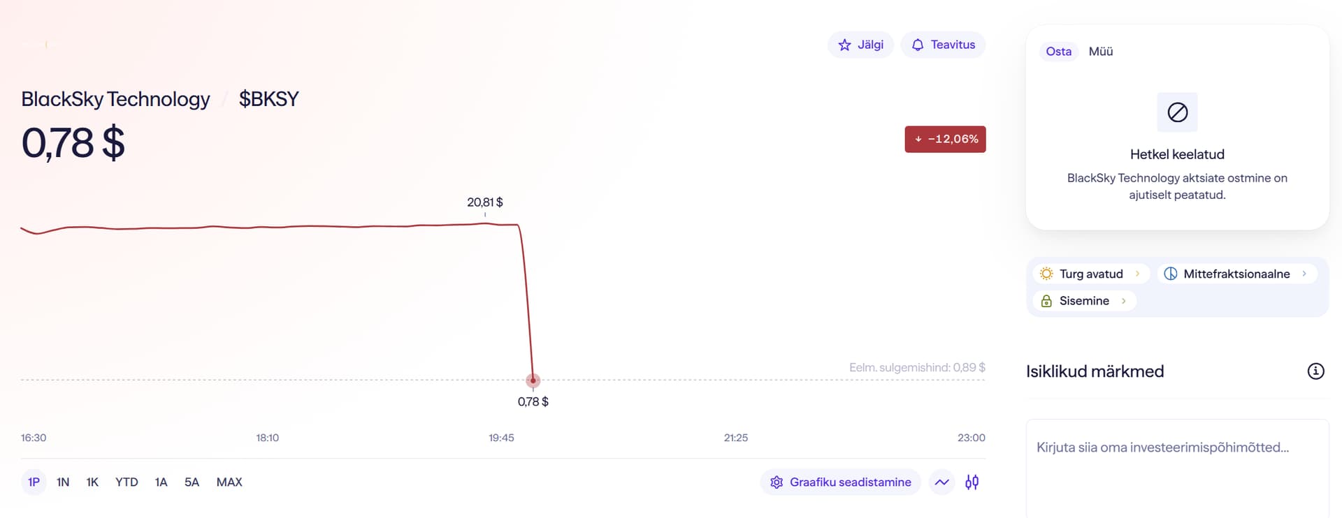 Tere, Karolina Lightyearist siin. Ole hea, kirjuta meile palun support@lightyear.com – BKSY tundub esimesel pilgul töötavat (https://lightyear.com/en/stock/BKSY:NYSE), aga klienditoe kaudu saame täpselt vaadata, mis valesti on.
