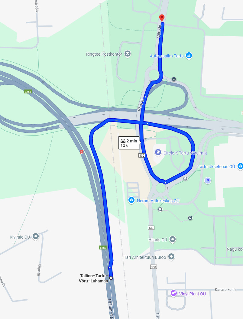Google vaatestt on loogika lihtne - sihtaadressile vasakpööre liikluskorralduslikult keelatud, seetõttu viib ka “ringiga”. Muus osas liiklussõlm nagu ikka.