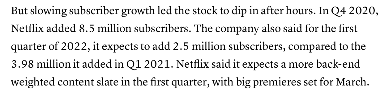 Langus (kirjutamise hetkel -19%) näib tulenevat sellest, et järgmiseks kvartaliks ennustatakse oodatust madalamat uute kasutajate hulka: