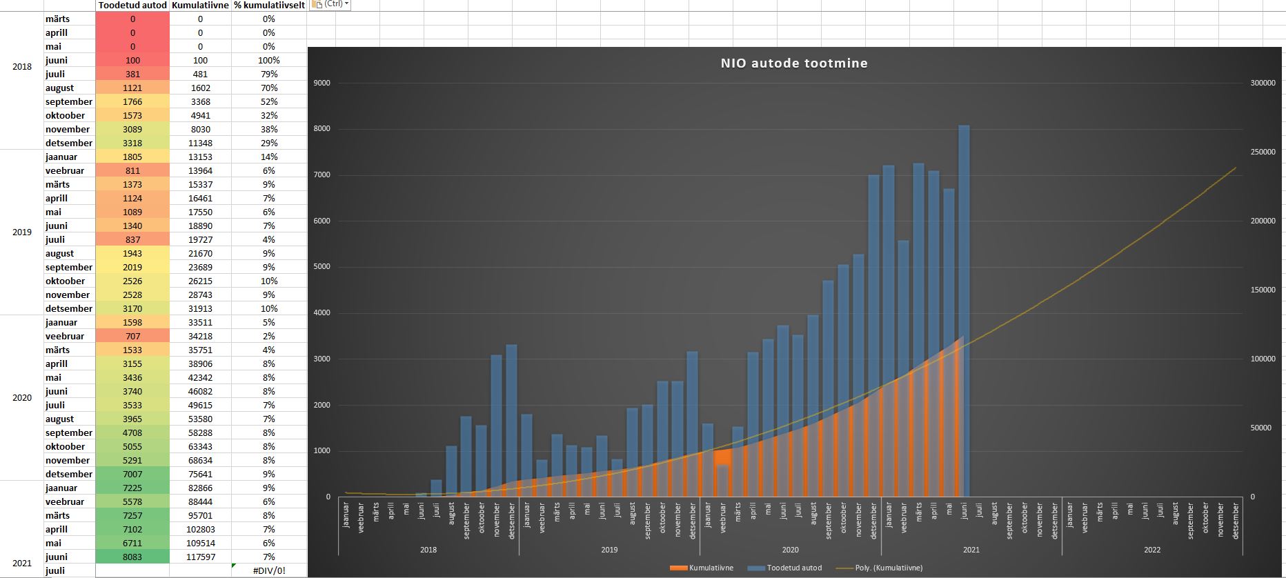 See ei ole "uus" reaalsus turul, sest ei ole midagi uut päikese all! 20 saj alguses tõusis autoaktsia Fiat Itaalia börsil autobuumi ajal paari aasta jooksul 25 liirilt 1885 liirini ehk 7440%!! Seega ei ole Tesla ja Nio selle kõrval midagi enneolematut ega erakordset...