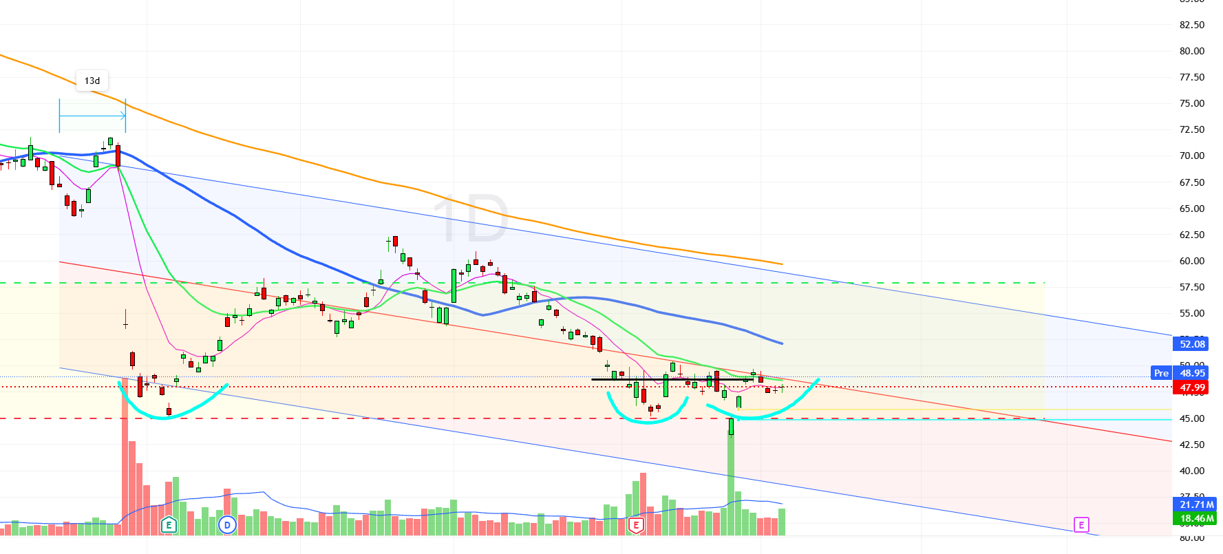 Seda aktsiat ei oma, aga tihti püüan neid kukkuvaid asju, jõhker kus sooduka effekt töötab. Nüüd veidi targem, jäin ühe treidiga lõksu, mis nüüd 0 välja sain, langeva noa puhul vaata alati kinnituse signaal ära, et põhi, muidu 1h signa pealt osta või 4h, kui nädalal ainult müük peal, vot see lõikab hästi. Lühema omad tekitavad vahepeal hüpet ülesse, tekitades veel mõnusa Fomo lisaks.