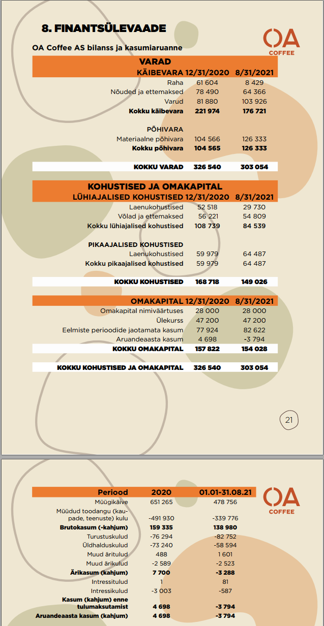 Ise vaatasin ja mõtlesin, et üks kasvu allikas olevat olnud frantsiisikohvikute avamine ja ühe kohviku pealt prognoositi tulu 1000 EUR kuus, aga et post-COVID maailmas tundub see eluliselt ebausutav, et kusagil on ettevõtjad kes soovivad kohvikusektorisse siseneda ja frantsiise võtta.