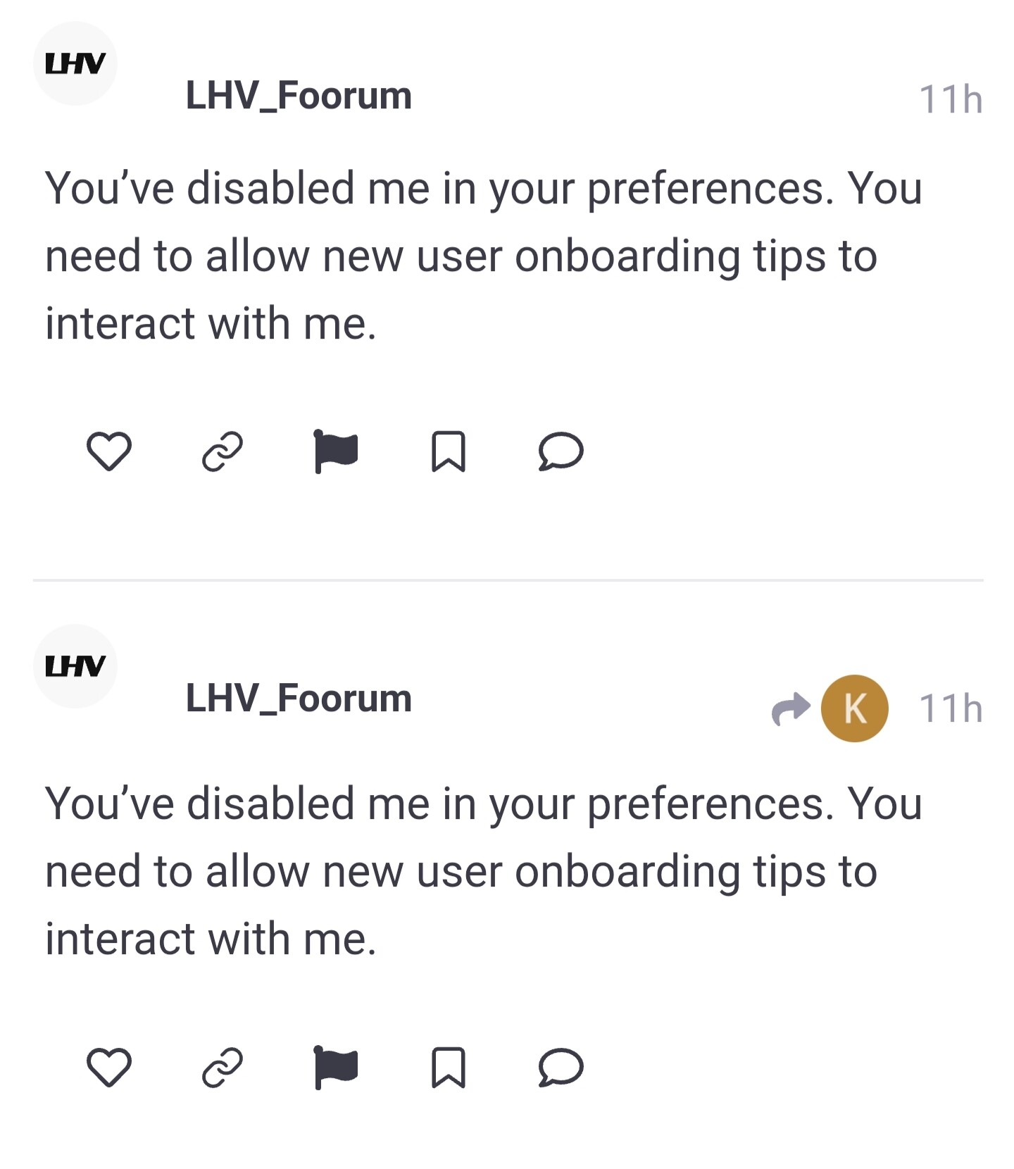 You’ve disabled me in your preferences. You need to allow new user onboarding tips to interact with me.