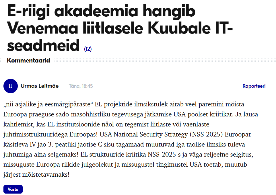 Mis iganes aga selle Kuuba arvutitkeisi uurimisega peaks tegelema mingi jõuametkond, vastasel juhul tekib õigustatud küsimus, et mis riigis me elame ja kes on andnud juhtoinastele sellised volitused.