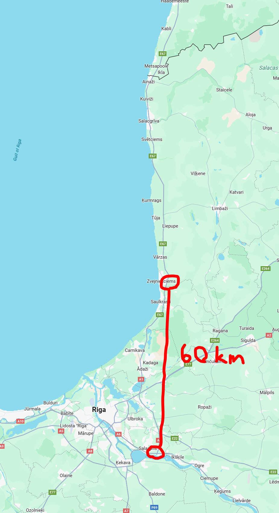 Pilt ka: Salaspilsi (lõunas) ja Skulte (põhjas) vahel jääb esialgu vana raudtee laius.