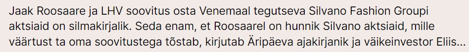Äripäev igatahes väidab täna, et: