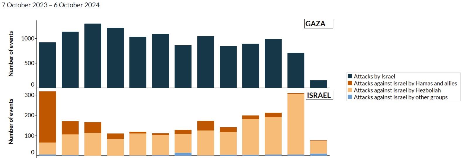 - Briti humanitaarorganisatsiooni AOAV läbi viidud, aastaid 2011-2020 hõlmava mammutuuringu kohaselt moodustavad tiheasutuses toimuvate relvakonfliktide korral tsiviilelanikud keskeltläbi 91% kõigist surmadest ja haavatutest ehk kombatantide/tsiviilisikute suhtarvu 1:10. Gazas on see suhe sõltumatute uuringute väitel 1:2 (Netanyahu väitel moodustavad tsiviilisikud 53% ohvritest.)
