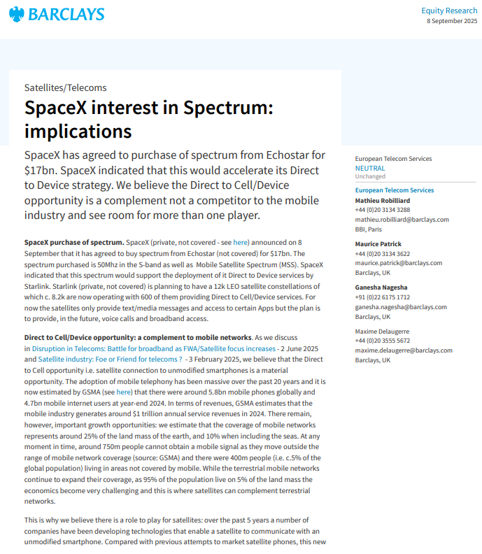 WSJ: SpaceX said it would use spectrum bought from EchoStar as a foundation for Starlink’s direct-to-cell business around the globe. It could also share spectrum with telecom partners.