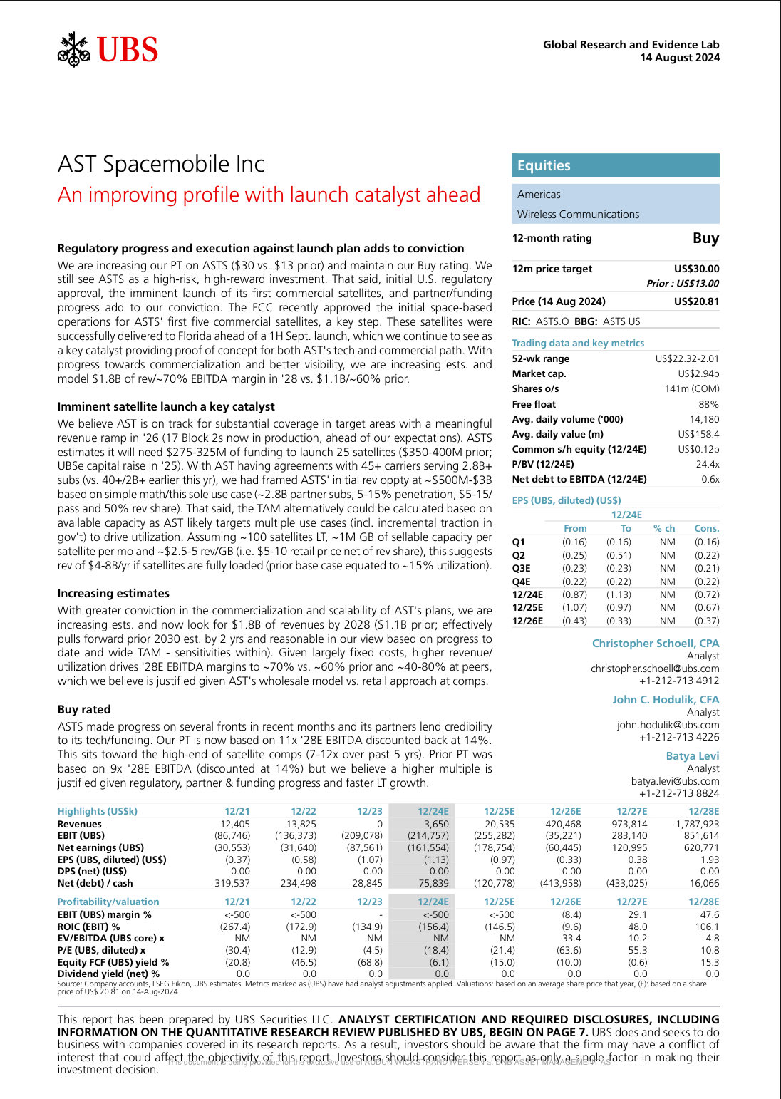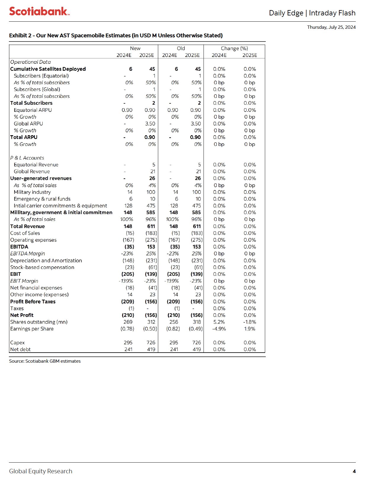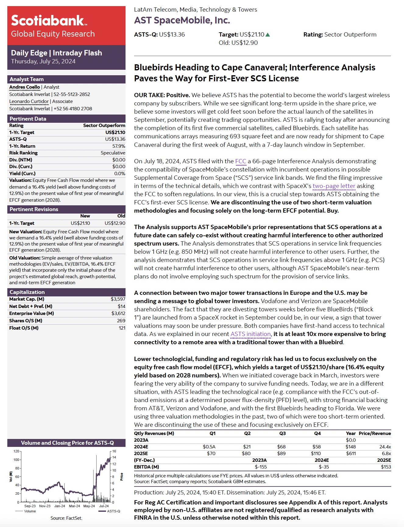 Siin on mitu head mõtet välja toodud, millele tähelepanu pöörata: * Siit edasi keskendub turg peamisel FCF valuatsiooni mudelitele! Scotia on oluliselt konservatiivsem, kui DB. sellele vaatamata näevad käibe/ebitda min kahekordistumist igal aastal 2025-2031. 10B FCF saavutamine Scotia mudeli järgi 2030-2031. * kinnitus väitele, et SpaceX must "re-design its satellites" ja ASTS omab tehnoloogilist eelist. * veendumus, et AST saab esimesena litsentsi kätte. Siin varem küsitule vastus, et nõuete lõdvendamine Starlinki'le on üsna ebatõenäoline, sest reeglid on paigas ja Starlink on üle jala kõike teinud.