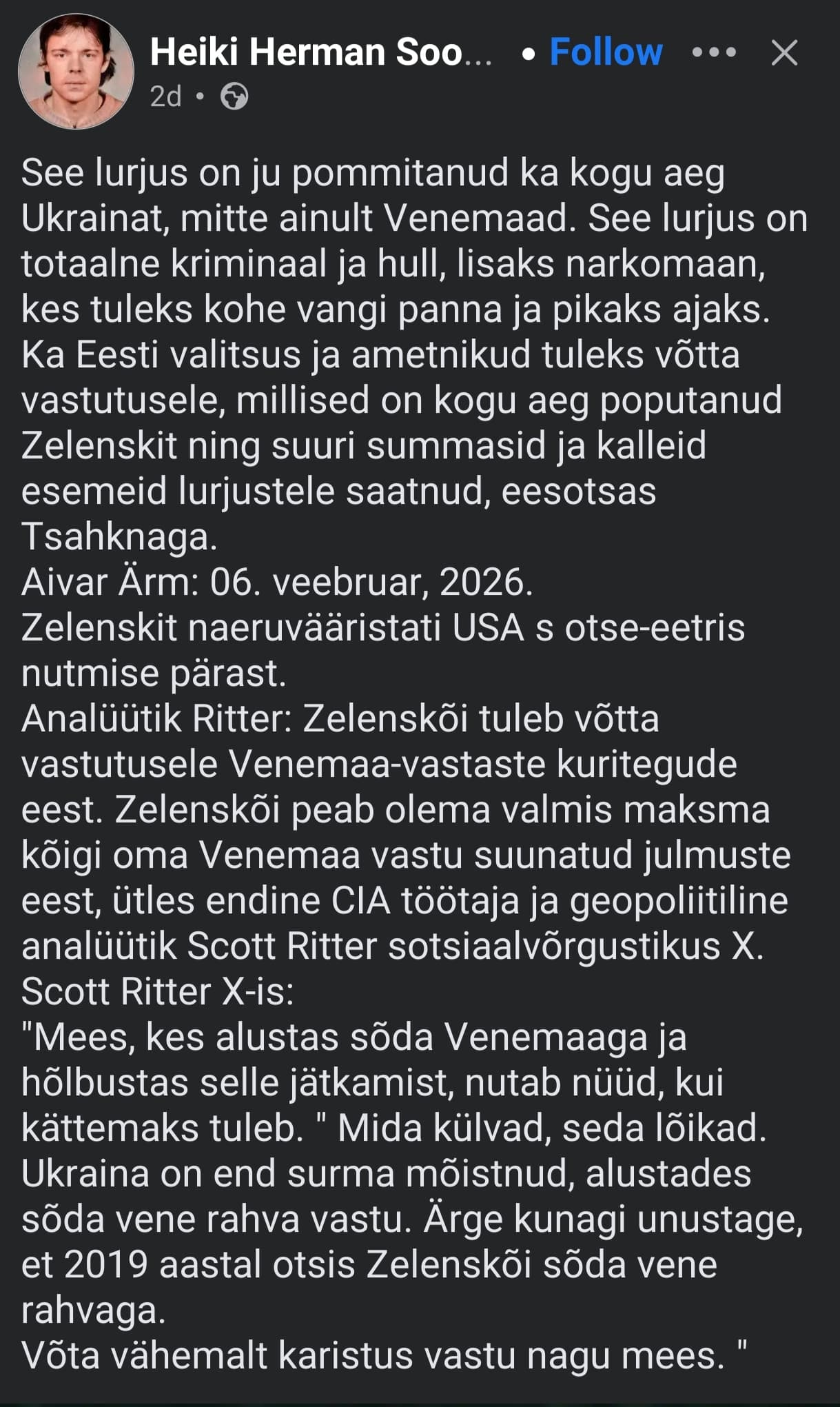 PS - kuidas te sellist erakonda ikka veel toetate? Suurimale venestamise pooldajatele ei saa ju poolikut häält ka anda. Eriti, kes seda maha salgavad ja arglikult statistiliste manöövrite taha poevad.