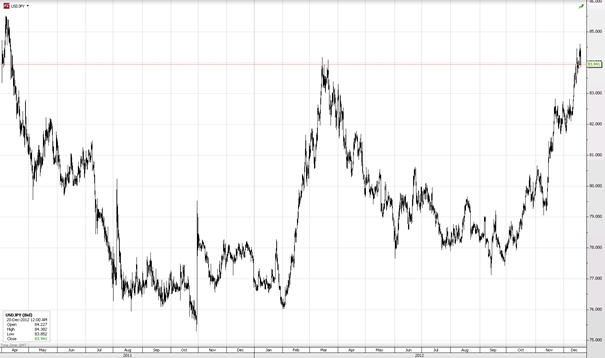 Jaapani keskpank teatas täna stiimulprogrammi mahu suurendamisest 10 triljoni jeeni võrra (kokku 101 trl jeeni peale), mis on viimase nelja kuu jooksul juba kolmas aktiivne samm keskpanga poolt, millega üritatakse majandust turgutada ja positiivset inflatsiooni saavutada. Tänane otsus oli turuosaliste jaoks täiesti ootuspärane, kuid uue peaministri poolt korduvalt nõutud 2% inflatsiooni sihtmärgi rakendamise arutelu lükati edasi järgmisele kohtumisele. Üks keskpanga liige hääletas isegi intressimäärade langetamise poolt, mis on nagunii juba rekordmadalas 0-0,1% vahemikus. Keskpank langetas ühtlasi oma majanduskasvu väljavaateid, tuues probleemidena esile langeva ekspordi- ja tööstustoodangu mahu ning lisaks ka geopoliitilised pinged Hiinaga. USDJPY tegi eile uue 20 kuu tipu 84,60 tasemel, kuid nüüd keskpanga otsuse järgselt taandumas ja kaupleb hetkel 0,56% madalamal 83,92 juures.