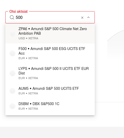 vali mõni Xetral noteeritud s&p500 etf valikut on, näit:
