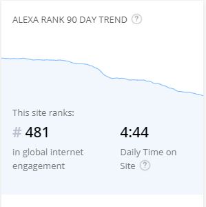 Viimane on saavutatud hoolimata sellest, et lehekülje ranking alexas on 719 ja külastusaeg 3:45.